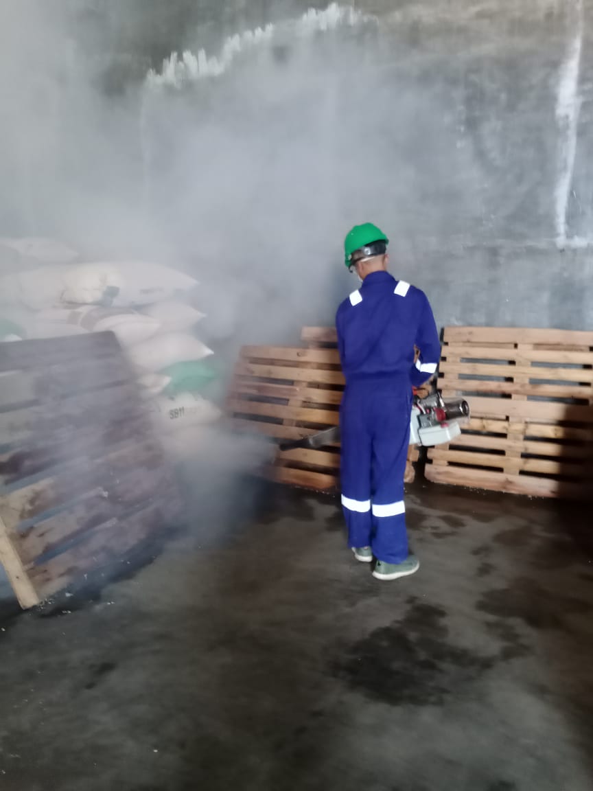 Fumigasi Material Bahan Baku {Kayu, Rempah-rempah, Jagung, Gaplek, Mente, Kopra, Kacang-kacangan dan hasil bumi lainnya yang terfeksi hama, Fumigasi Perawatan Alat angkut.